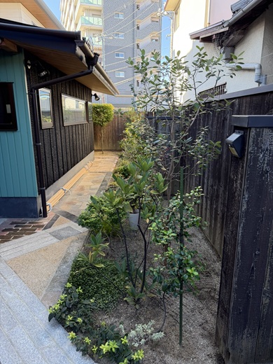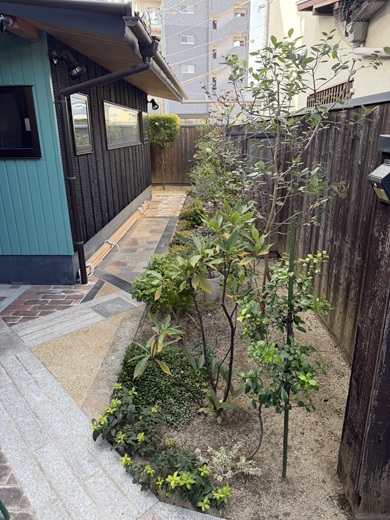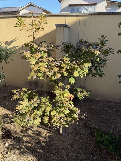 オリーブの隣の常緑ドングリを伐採しアオキを植え替えた。だんだん剪定が面倒になってきたのかもしれない。