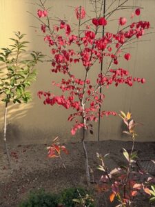 ニシキギの紅葉も美しい。自生のモミジを4本それぞれ育てています。元気のいいものを育ててみたいと思います。